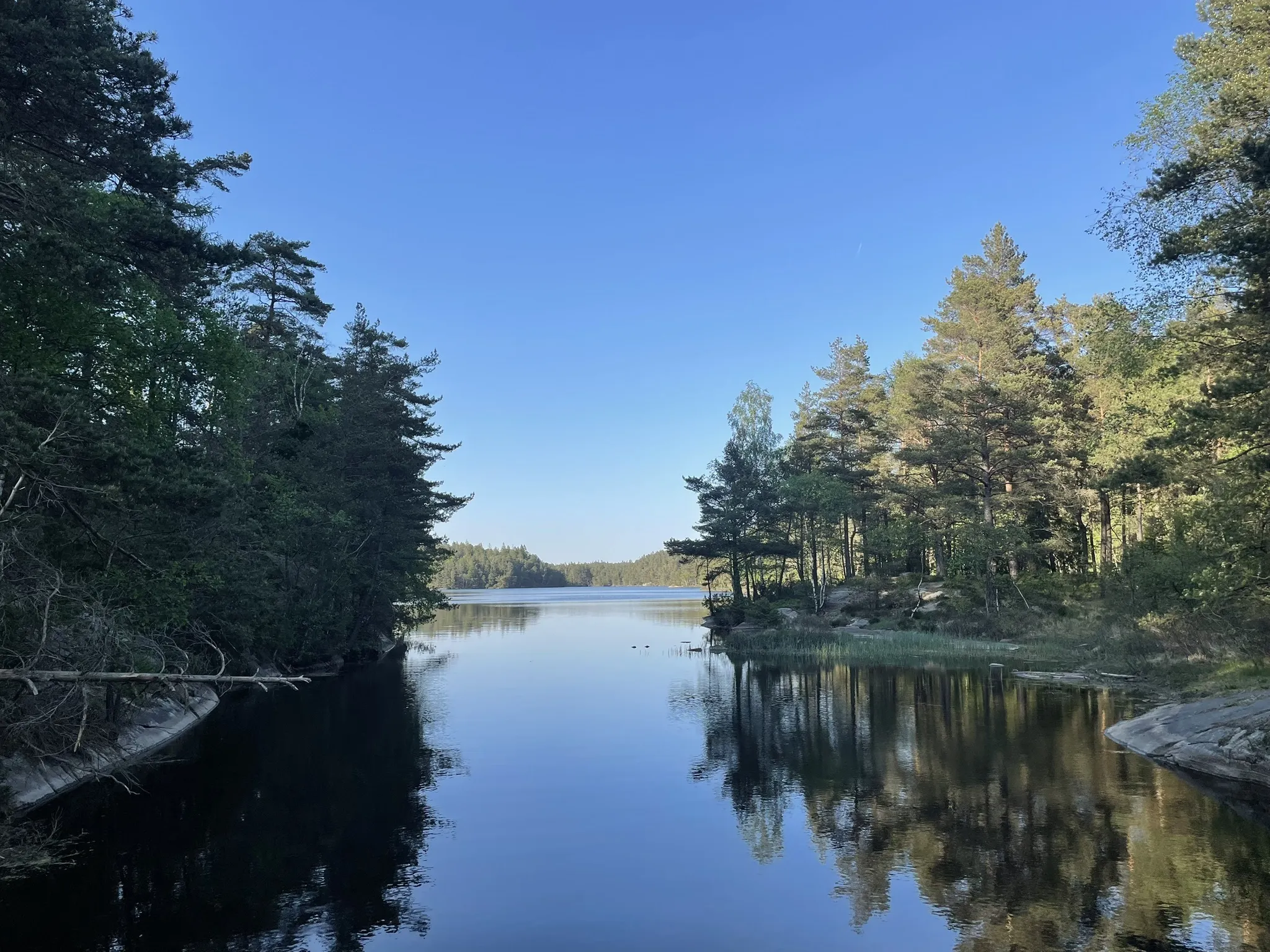 Vi vandrar ca 7 km på väl upptrampade stigar i skog och runt sjöar.