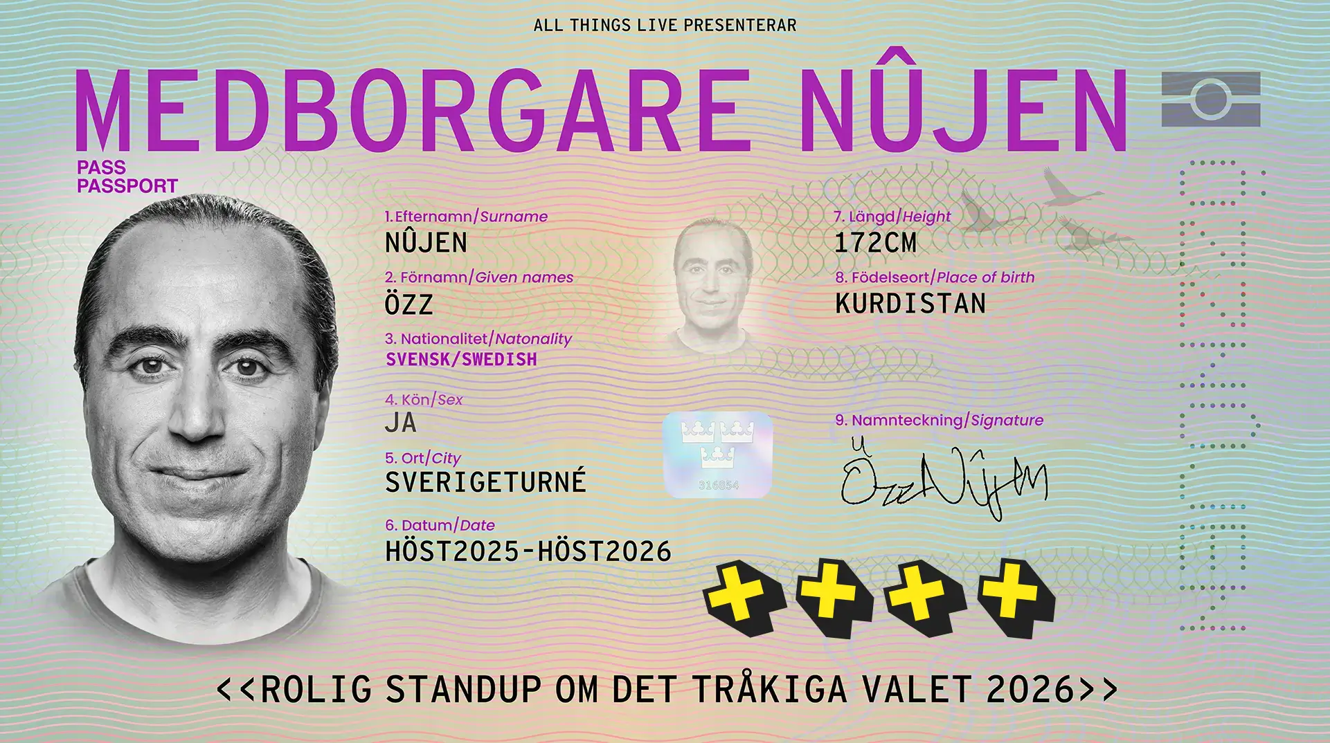 I standupföreställningen “Medborgare Nûjen” tar Özz Nûjen sig an frågan vad det egentligen betyder att vara medborgare i dagens Sverige.