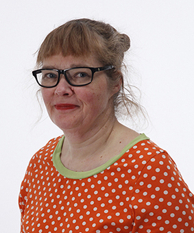 Mönsterdesign ligger föreläsaren varmt om hjärtat liksom att arbeta med textil, papper och hållbarhet. ”Vardagsdesign”, att designa produkter vi använder varje dag och som får vardagen att bli lite roligare, är något som hon alltid återkommer till.